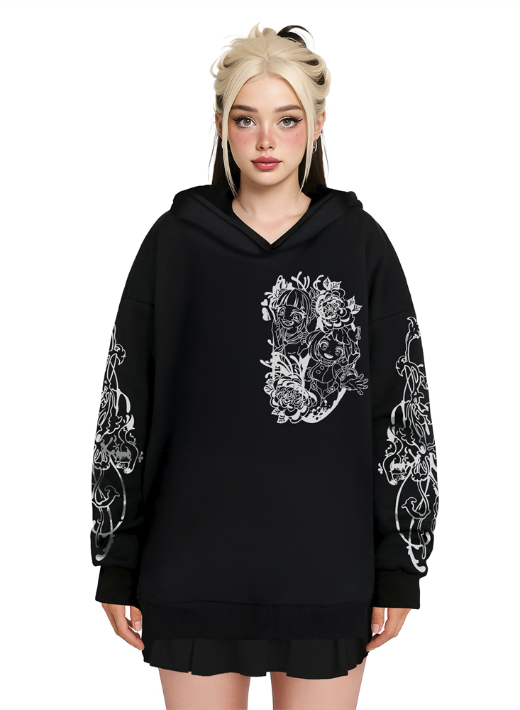 Любовь и ярость переплетаются в одном взгляде. Футболка с контрастным принтом передаёт накал эмоций и двусмысленность связи двух героинь - между нежностью и борьбой, между светом и тьмой.